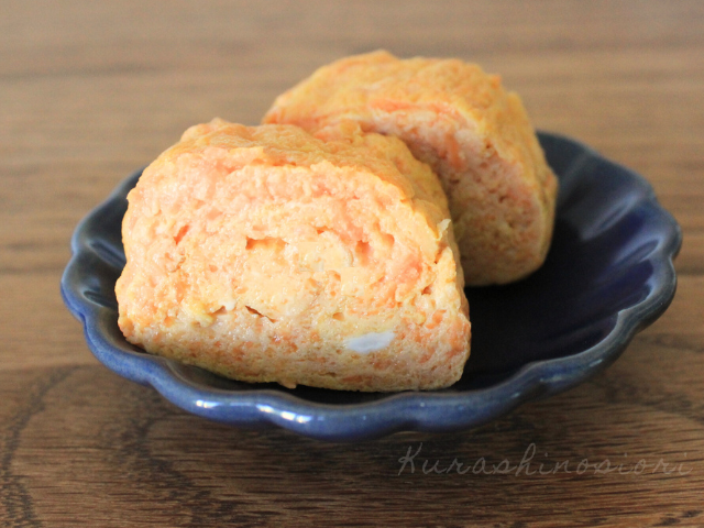 こちらも、にんじんが苦手な子どもにおすすめのレシピです。すりおろして卵焼きにすると、にんじん特有の味わいが目立たず食べやすくなります。卵焼きにほんのり赤みがさすのも可愛らしいですよ。にんじんの量は、子どもの反応を見ながら調節してみてくださいね。