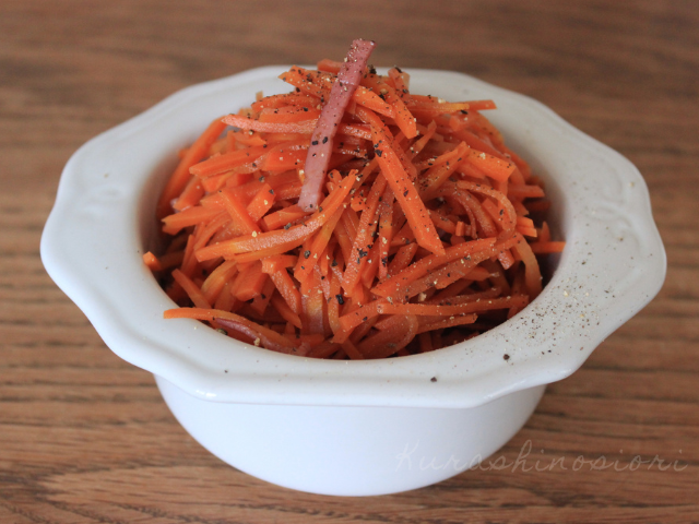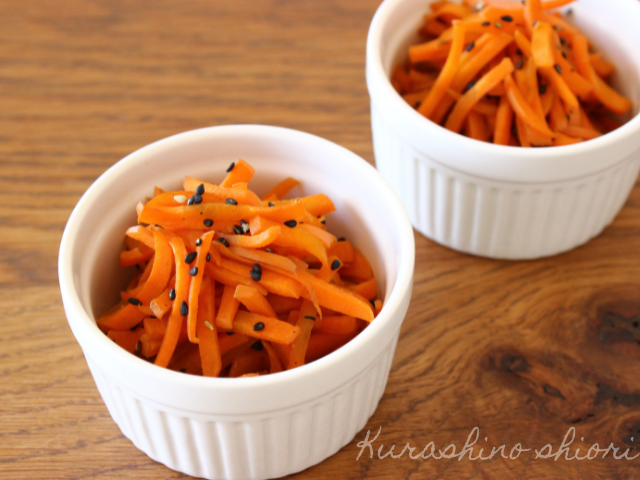 まずは、にんじんの和風レシピを紹介します。肉や魚などさまざまなおかずとの相性がよく、お弁当や作り置きにぴったりです。
