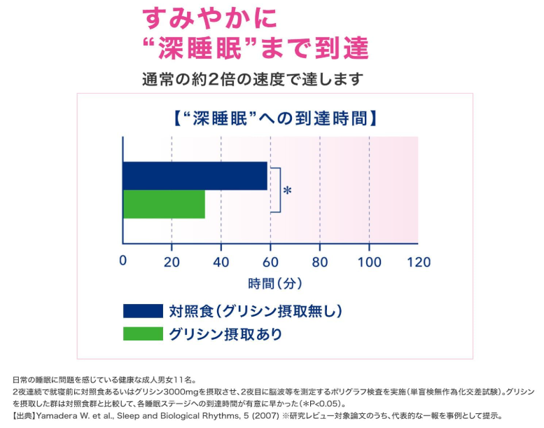 *7 味の素株式会社「アミノ酸“グリシン”摂取により、入眠時の深部体温を低下させ、睡眠の質・睡眠量が改善されることを発見!」